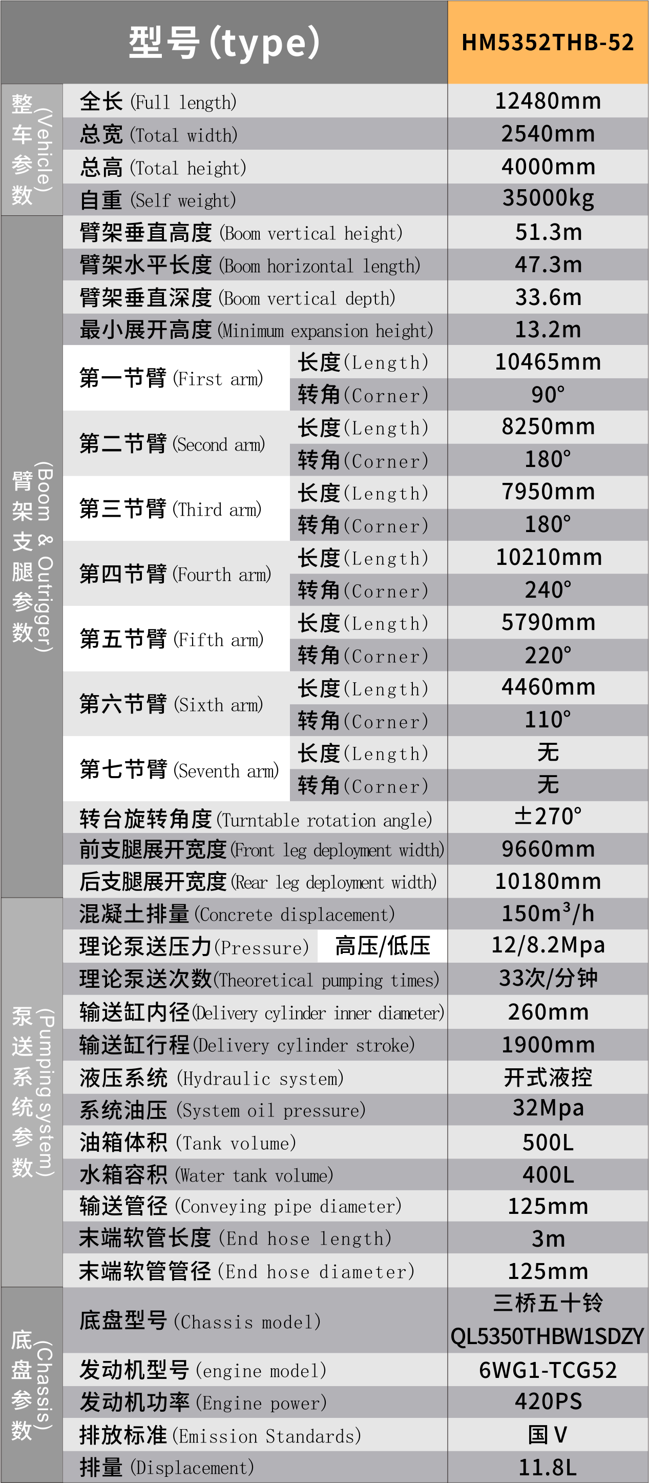 HM5352THB-52三橋52米國五五十鈴底盤泵車是一款承載能力強(qiáng),動力性能好、油耗低,操作簡單可靠的泵車。