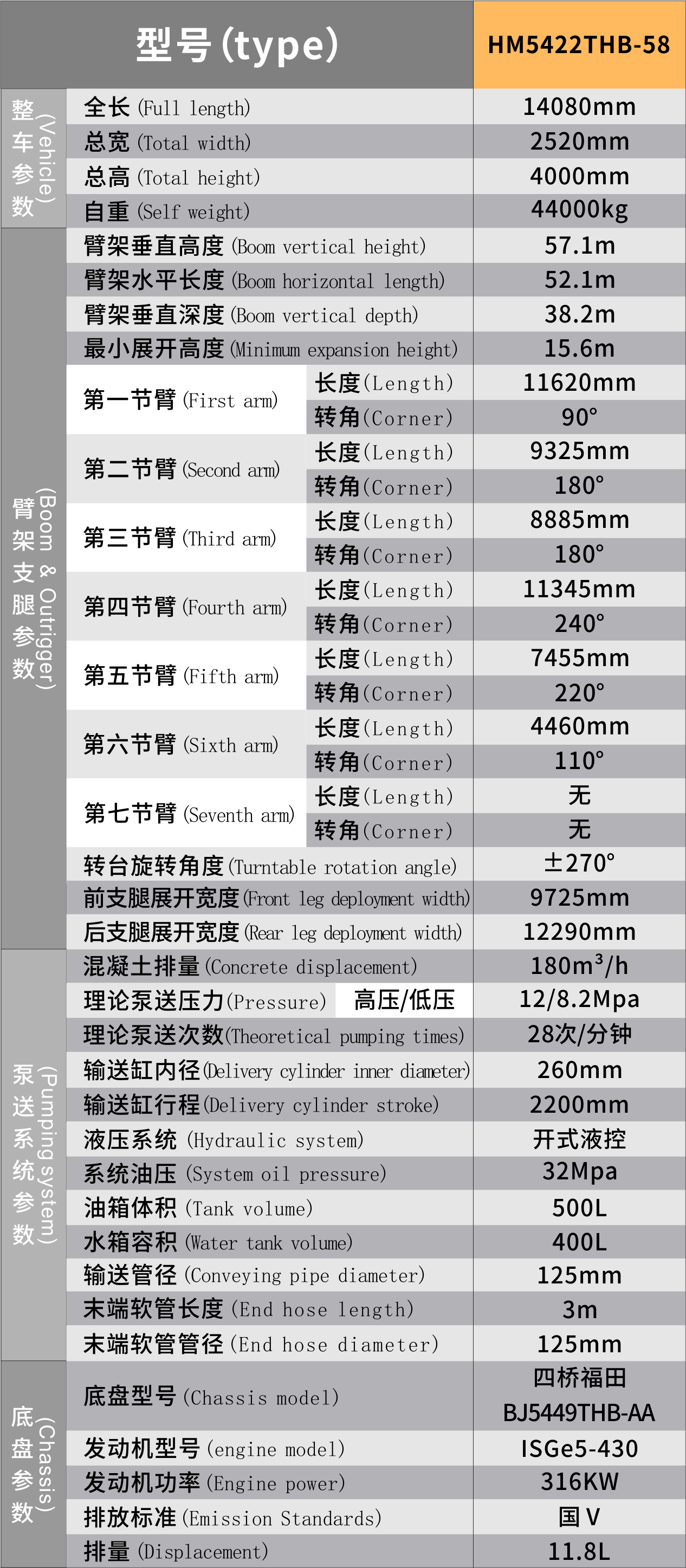 型號:HM5422THB-58 參數(shù):底盤:四橋福田